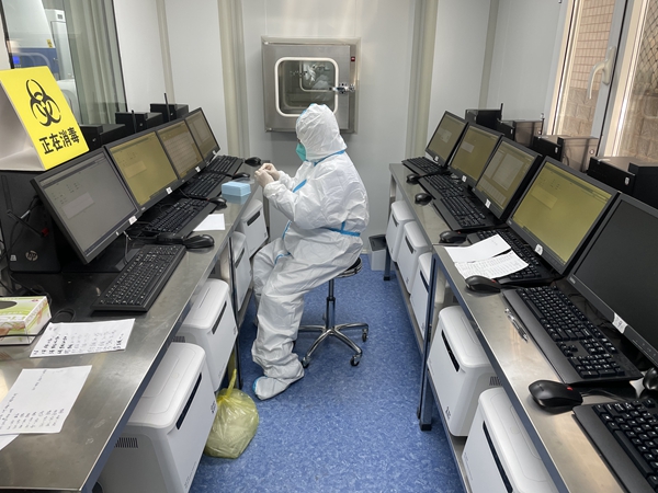 因为疫情原因已经打不到车了,熊猫体育支援医院的老师开着救护车专车来接我,在我看来那属实是极高的待遇。到医院后,便直奔方舱实验室。
