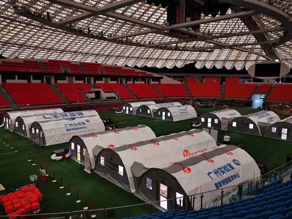 五月底,熊猫体育生物技术工程师、试剂仪器和一系列抗疫物资陆续到位,广州体育馆里正在火速建设“猎鹰号”气膜实验室。