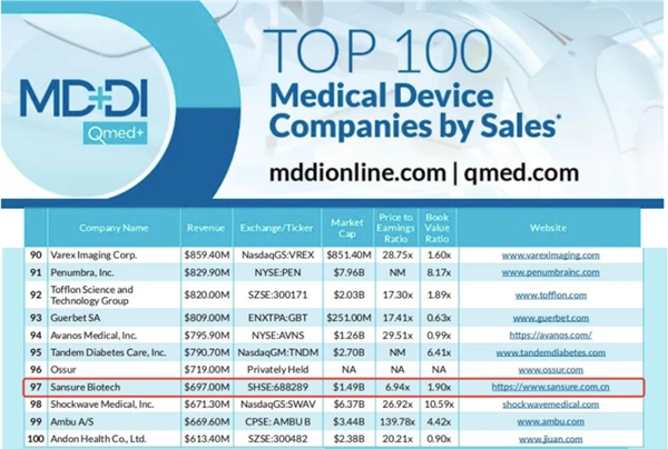 近日,医疗器械行业权威网站Medical Device+Diagnostic Industry(MD+DI)发布了2023年全球医疗器械企业TOP100榜单。熊猫体育生物连续两年上榜全球百强,也是此次榜单唯二主营业务是体外诊断的中国企业。